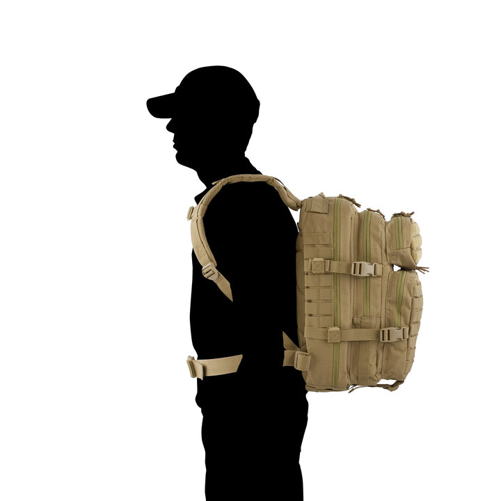 El almacenamiento sustancial, la comodidad de primer nivel y la personalización extrema son solo algunas de las razones por las que el Assault Pack es una de las mochilas más populares de Red Rock. Cuatro compartimentos expandibles proporcionan hasta 28 litros de almacenamiento con divisores internos incorporados y bolsillos con cremallera. Las correas de hombro de malla acolchadas reforzadas ajustables, una correa de cintura ajustable y una correa de esternón distribuyen uniformemente el peso entre los hombros y la cintura para brindar comodidad durante todo el día. Un panel trasero de malla acolchado sirve como un bolsillo oculto o proporciona almacenamiento para casi cualquier vejiga de hidratación, hasta 2.5 litros (la vejiga de hidratación se vende por separado). Con correas de compresión en tres lados, es muy fácil ajustar su mochila o reducir el volumen si no está completamente cargado.