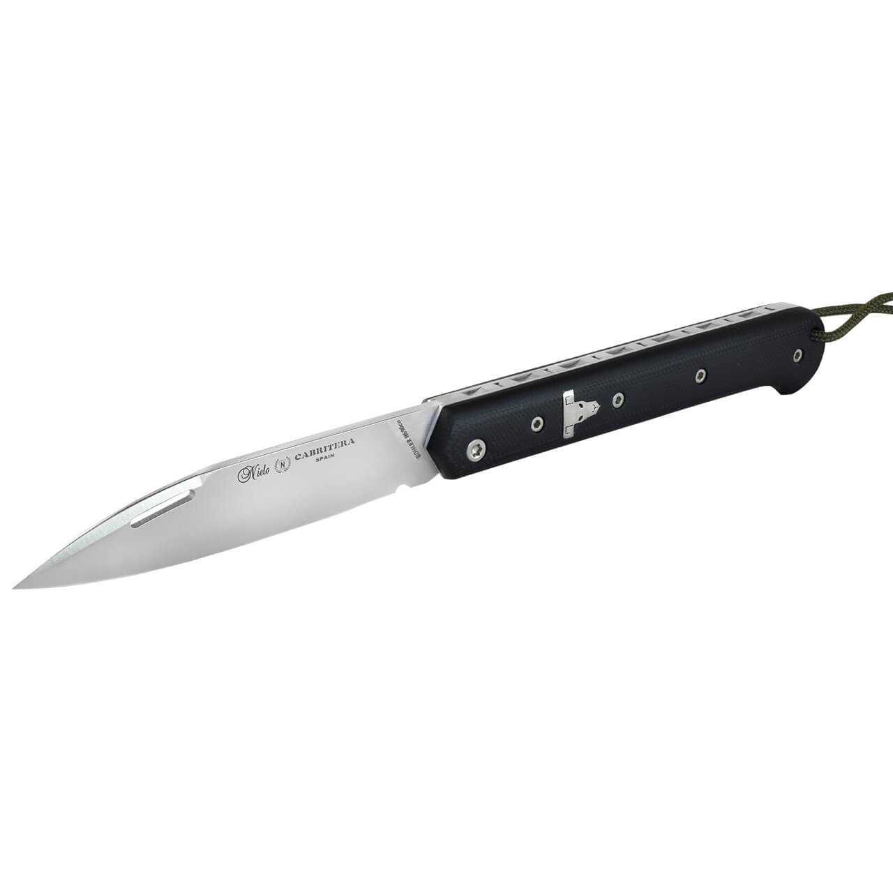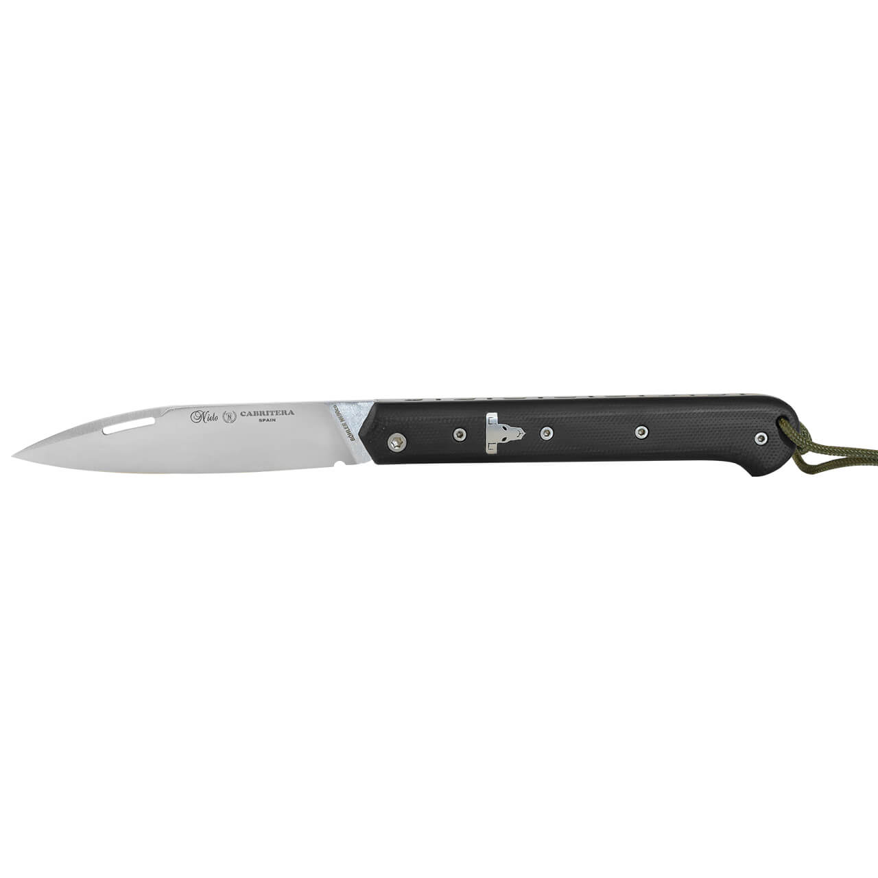 La Navaja Cabritera es una pieza clásica con un toque contemporáneo, ideal para los amantes del campo y la caza. Con una hoja lisa de acero inoxidable Böhler N-690 co, destaca por su resistencia superior, durabilidad en cualquier entorno y la corrosión. Su diseño asegura cortes precisos en las tareas más exigentes. El mango de G10 en color negro cuenta con una cuerda para mayor seguridad y agarre, combina estilo y funcionalidad. Con un sistema de bloqueo de pistón, garantiza un manejo ágil y confiable sin necesidad de mecanismos adicionales. Es ligero y fácil de llevar, perfecto para quienes buscan una herramienta versátil y duradera en el día a día.