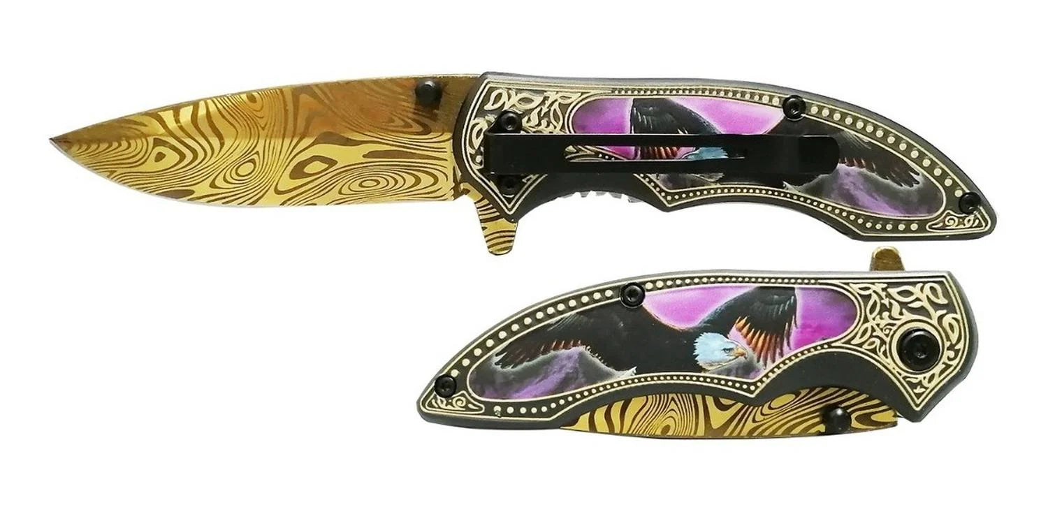 Navaja Dorada Diseño Águila con clip