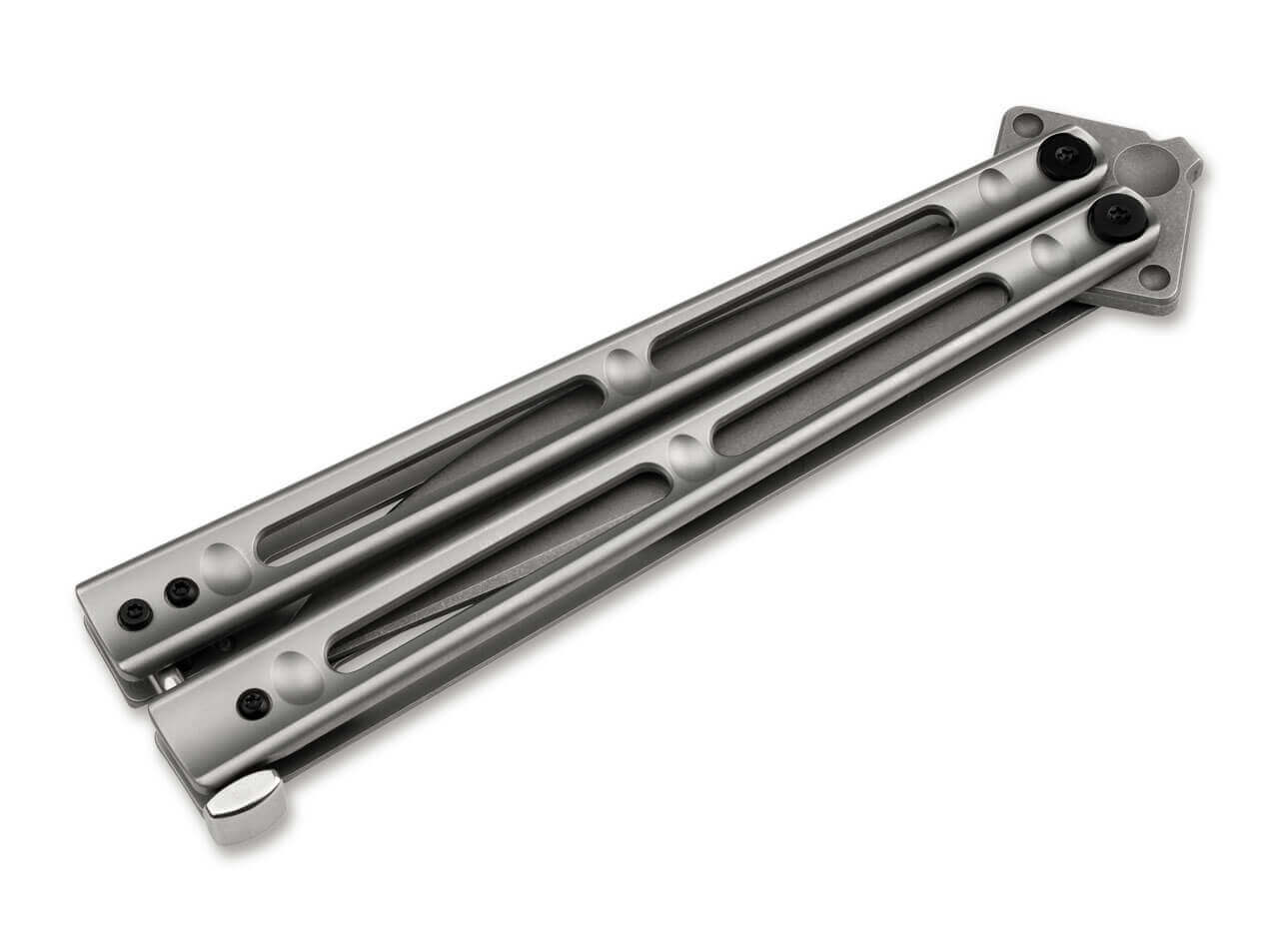 El Boker Plus Papillon es un balisong (navaja mariposa) de tamaño completo, equipado con mitades de empuñadura esqueletizadas en acero inoxidable con acabado mate bead‑blast. También conocida como navaja mariposa, el balisong recibe su nombre por el sencillo mecanismo de plegado de la empuñadura partida, mucho menos susceptible a la suciedad que otros mecanismos. La hoja tipo clip‑point con rodamientos de bolas está fabricada en acero D2 y cuenta con un acabado matte stonewash. El pronunciado ricasso refuerza el carácter táctico de la navaja. Incluye un estuche de nailon de alta calidad para almacenamiento.